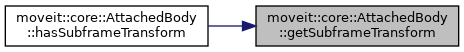 Get the fixed transform to a named subframe on this body (relative to the robot link)