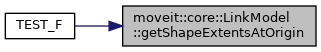 Get the extents of the link's geometry (dimensions of axis-aligned bounding box around all shapes that make up the link, when the link is positioned at origin – only collision origin transforms are considered)