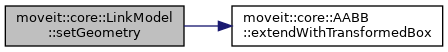 | void moveit::core::LinkModel::setGeometry | ( | const std::vector< shapes::ShapeConstPtr > & | shapes, |
