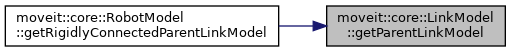 Get the link model whose child this link is (through some joint). There may not always be a parent link (nullptr is returned for the root link)