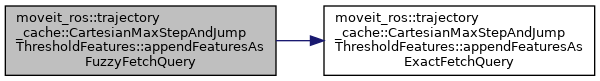 | moveit::core::MoveItErrorCode | appendFeaturesAsFuzzyFetchQuery (warehouse_ros::Query &query, const moveit_msgs::srv::GetCartesianPath::Request &source, const moveit::planning_interface::MoveGroupInterface &move_group, double exact_match_precision) const override |
