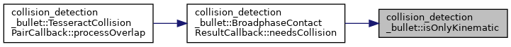 | bool | isOnlyKinematic (const CollisionObjectWrapper *cow0, const CollisionObjectWrapper *cow1) |