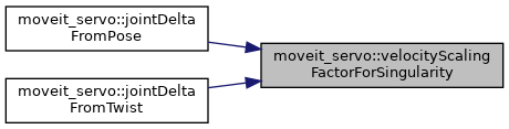 std::pair< double, StatusCode > moveit_servo::velocityScalingFactorForSingularity ( const moveit::core::RobotStatePtr &  robot_state,