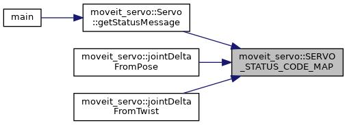 const std::unordered_map<StatusCode, std::string> moveit_servo::SERVO_STATUS_CODE_MAP ( { { StatusCode::INVALID, "Invalid" }, { StatusCode::NO_WARNING, "No warnings" }, { StatusCode::DECELERATE_FOR_APPROACHING_SINGULARITY, "Moving closer to a singularity, decelerating" }, { StatusCode::HALT_FOR_SINGULARITY, "Very close to a singularity, emergency stop" }, { StatusCode::DECELERATE_FOR_LEAVING_SINGULARITY, "Moving away from a singularity, decelerating" }, { StatusCode::DECELERATE_FOR_COLLISION, "Close to a collision, decelerating" }, { StatusCode::HALT_FOR_COLLISION, "Collision detected, emergency stop" }, { StatusCode::JOINT_BOUND, "Close to a joint bound (position or velocity), halting" } }  )