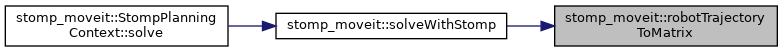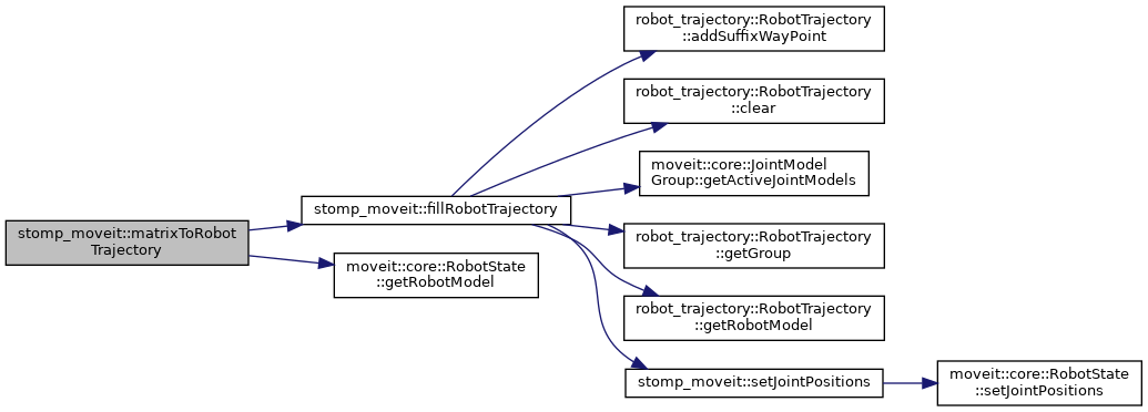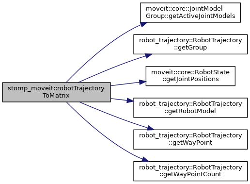 Eigen::MatrixXd stomp_moveit::robotTrajectoryToMatrix ( const robot_trajectory::RobotTrajectory trajectory)
