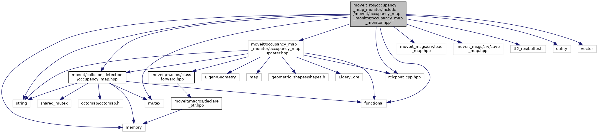 #include <moveit/collision_detection/occupancy_map.hpp>#include <moveit/occupancy_map_monitor/occupancy_map_updater.hpp>#include <moveit_msgs/srv/load_map.hpp>#include <moveit_msgs/srv/save_map.hpp>#include <rclcpp/rclcpp.hpp>#include <tf2_ros/buffer.h>#include <functional>#include <memory>#include <mutex>#include <string>#include <utility>#include <vector>