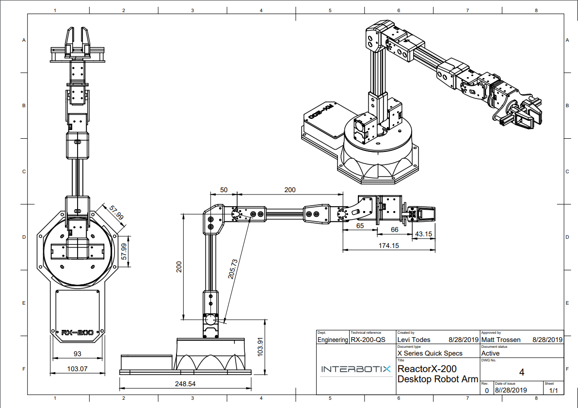 * Working Payload for the ReactorX-200 is inside its maximum reach, if intending to use a 150g weight we recommend no more than a 50% extension of the arm.