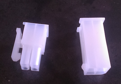 1x Four Position Male Molex Connector (Left) and 1x Four Position Female Molex Connector (Right)