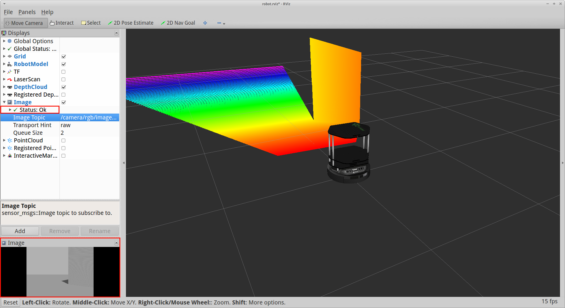 2. Enable DepthCloud option from left-bar and you will see TurtleBot’s depth