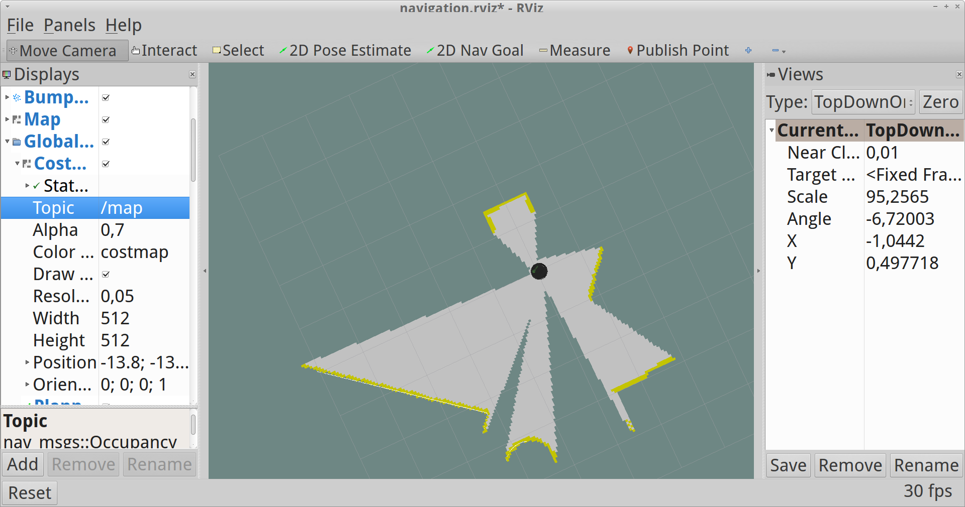 roslaunch turtlebot_rviz_launchers view_navigation.launch4. If you see a picture like this then creating the map has been realized successfully.