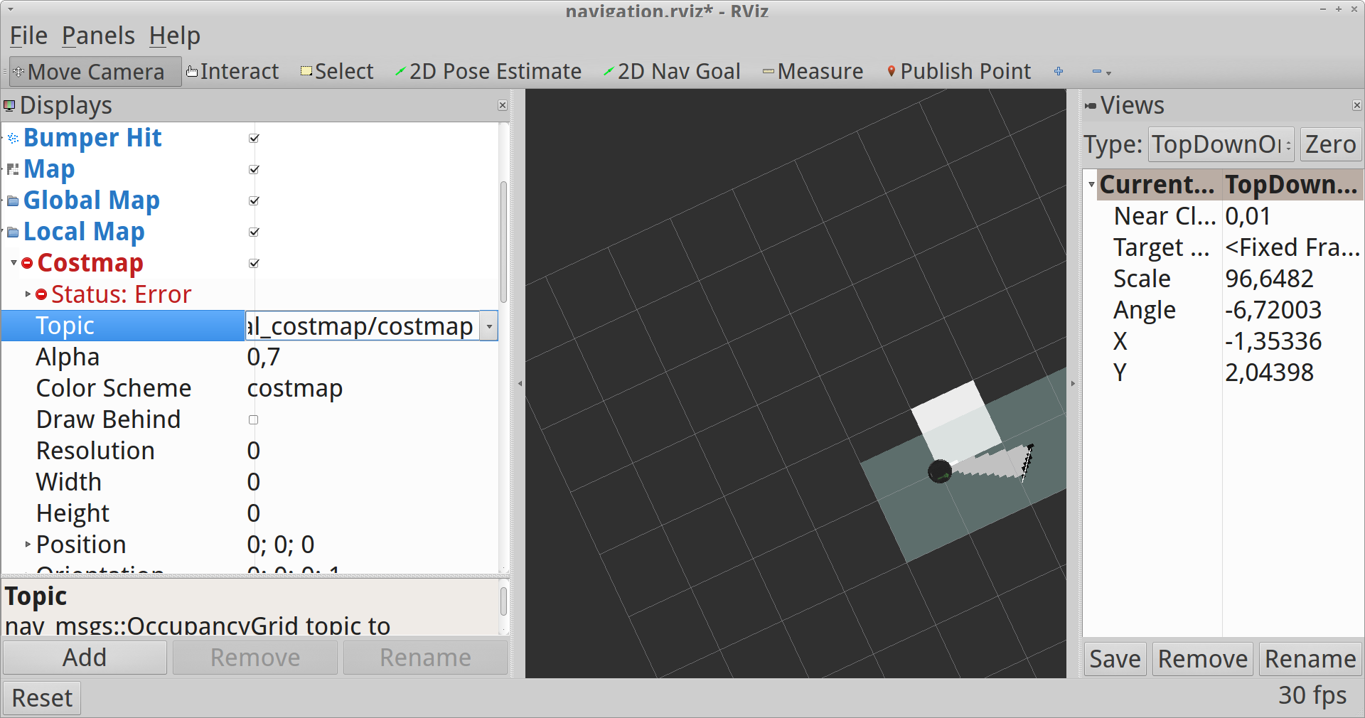 Global map->Costmap->Topic (choose /map from drop-down list).
