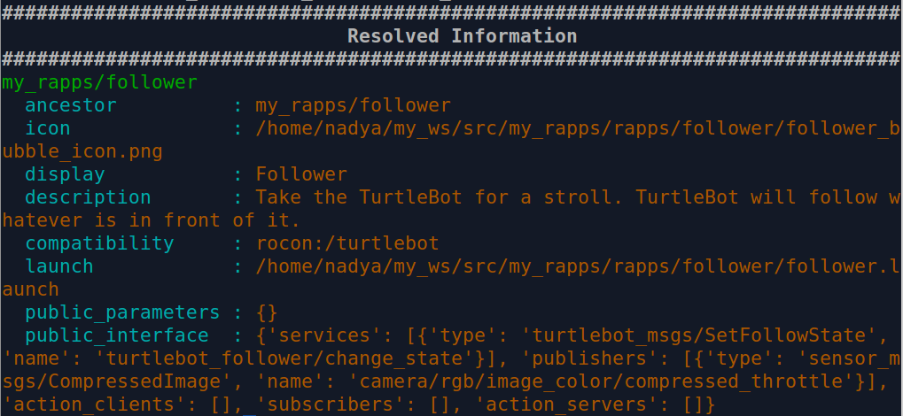 rosservice call /gamza2/start_rapp my_rapps/follower [] []
