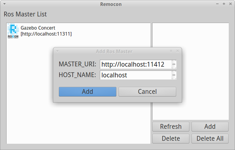 rocon_remocon8. Press Add. Edit MASTER_URI.