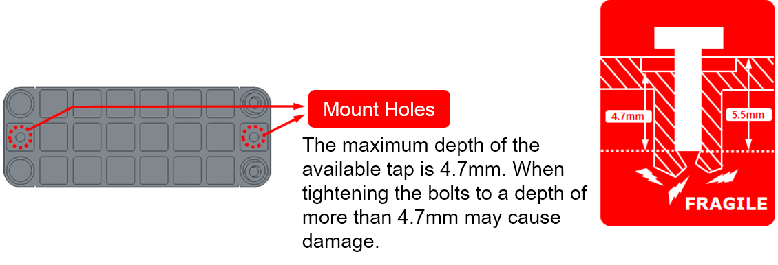 - Mount Hole Depth : Valid depth 4.7mm, Depth from the surface 5.5mm